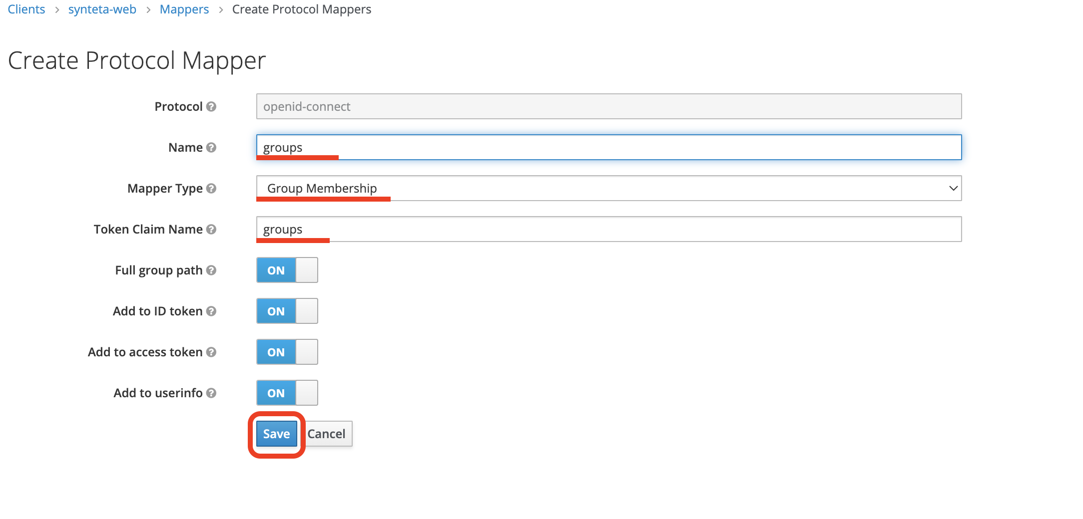 Name-groups;Mapper Type-Group Membership;Token Claim Name-groups;