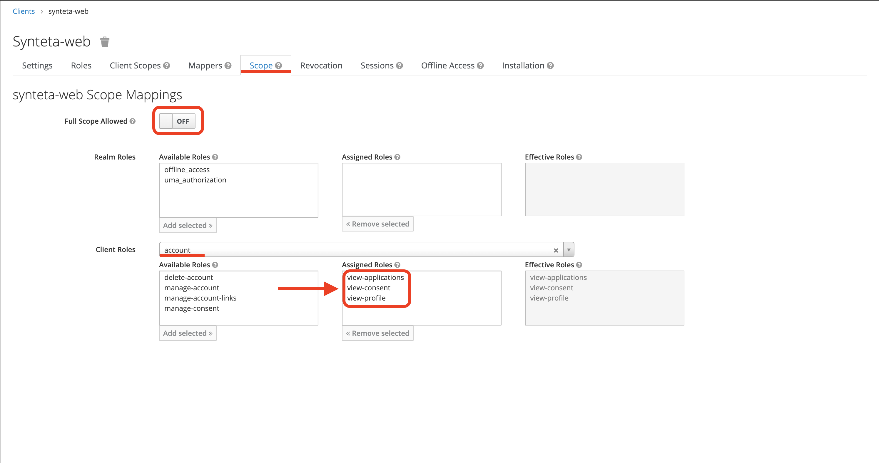 view-applications,view-consentиview-profileиз колонки Available Roles в колонку Assigned Roles.