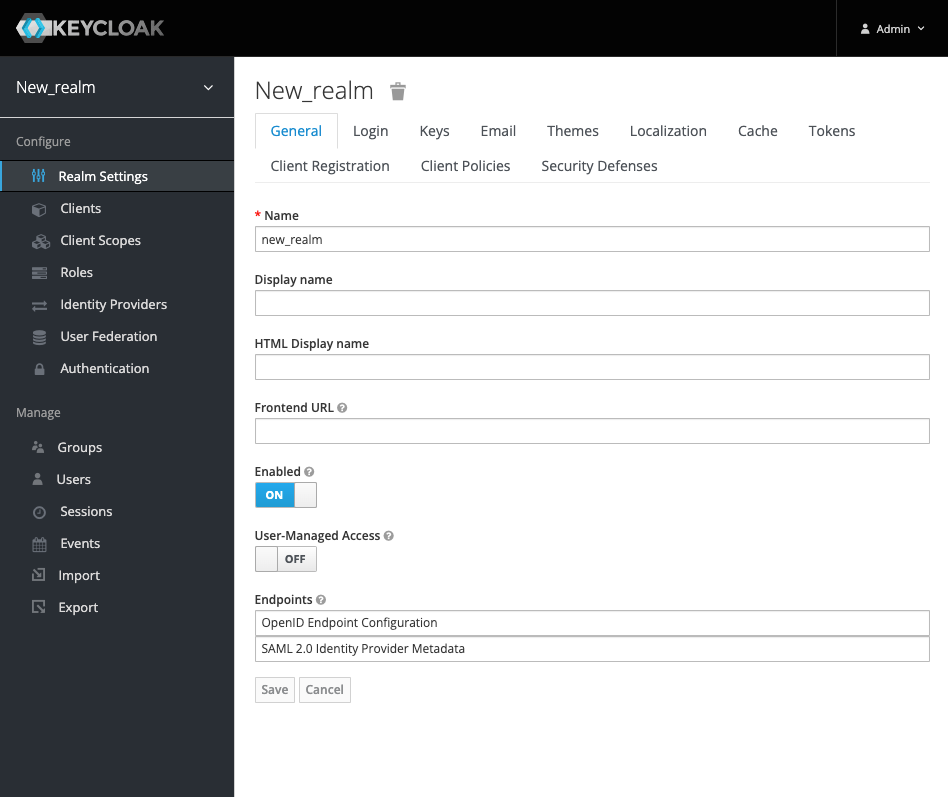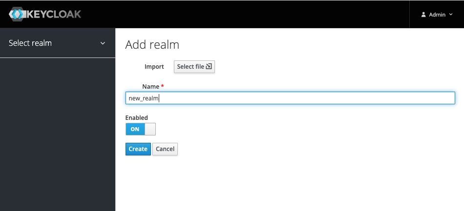 На открывшейся странице укажите наименование Realm, которое в дальнейшем при замене стендозависимых параметров необходимо будет подставлять в значение