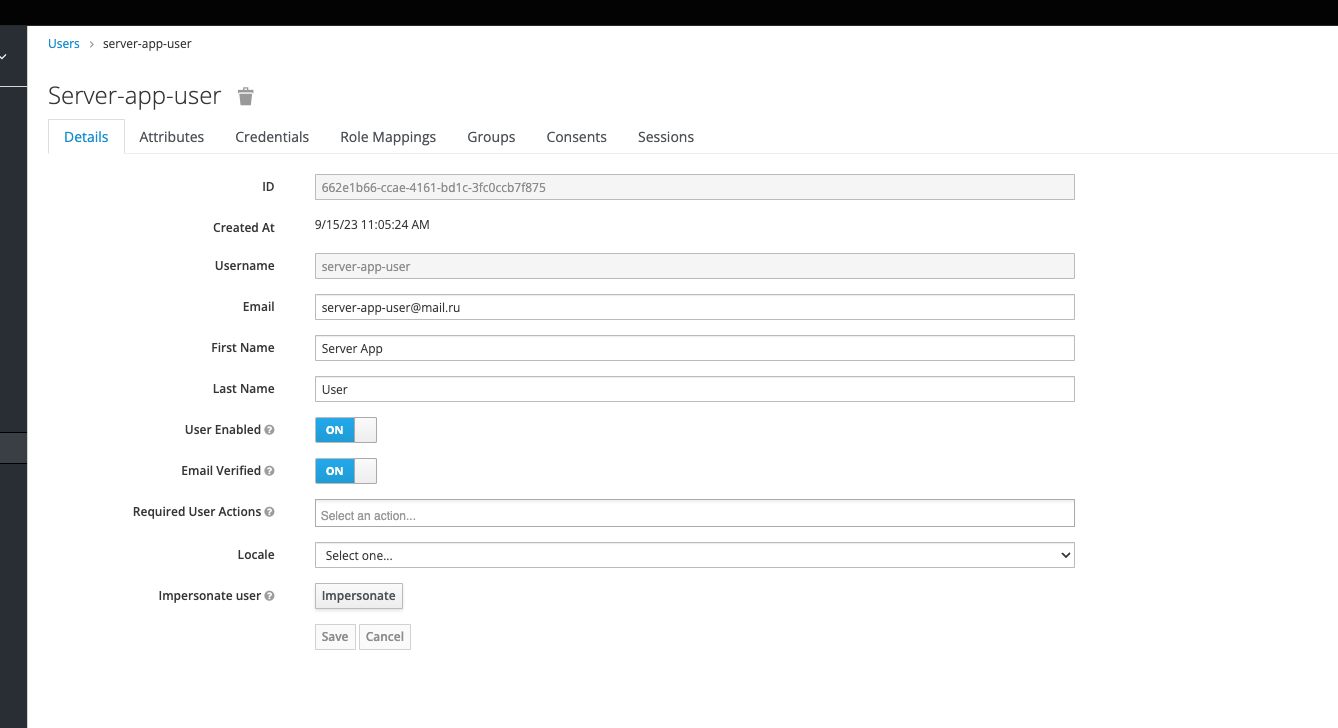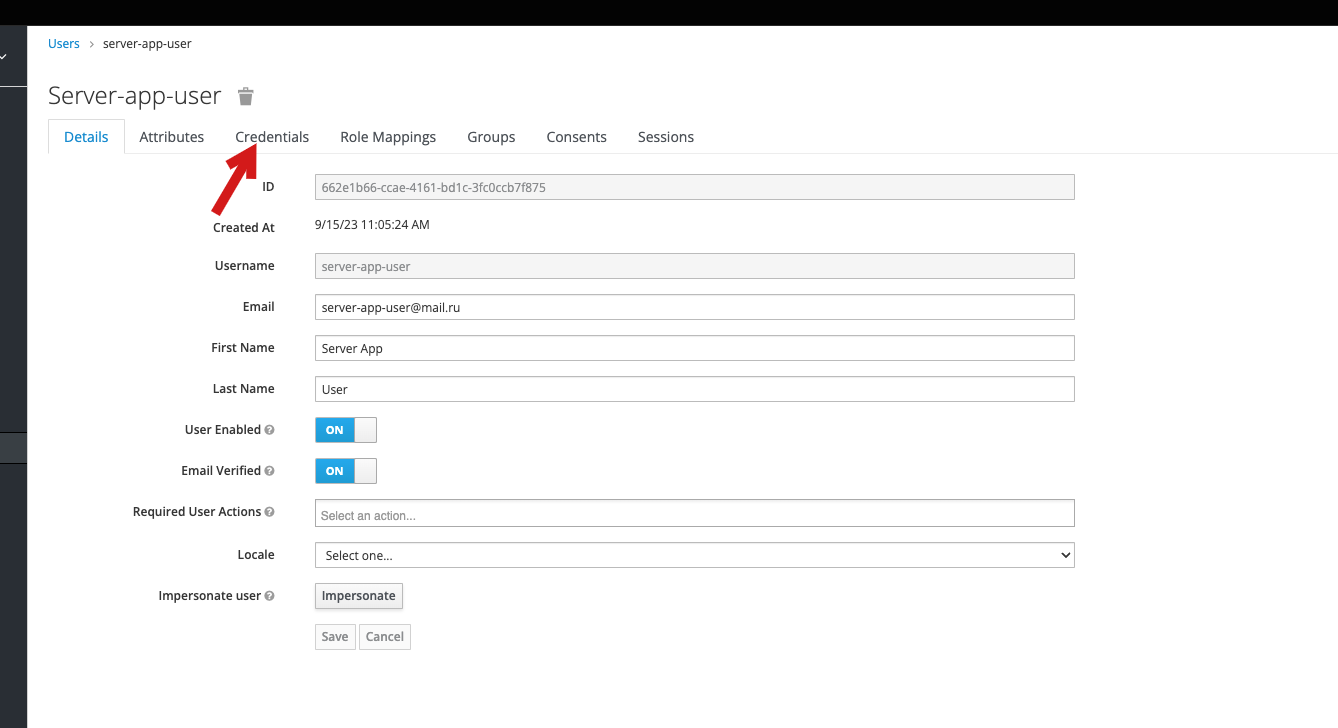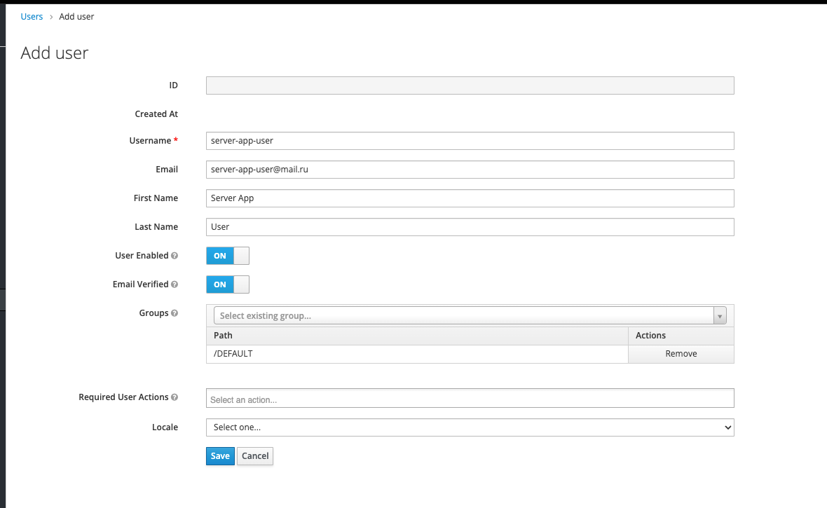 Username- значение пароля, которое в дальнейшем при замене стендозависимых параметров необходимо будет подставлять в значение<PVWTDM_KEYCLOAK_MANAGER_USERNAME>EmailFirst Name-authoritiesLast Name-authoritiesUser Enabled-ONEmail Verified-ONGroups- из выпадающего списка выбрать/DEFAULT