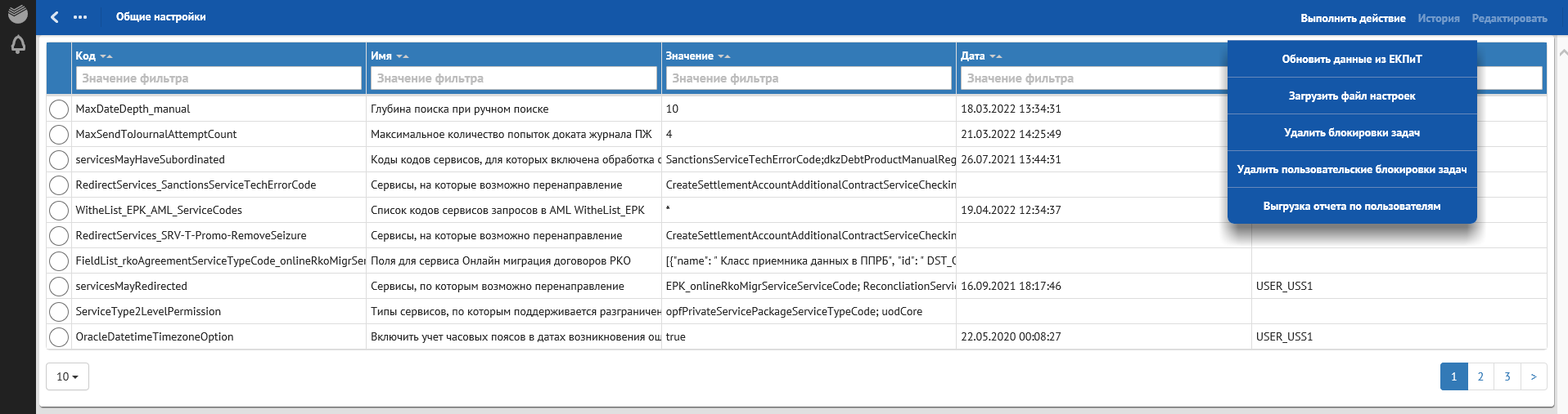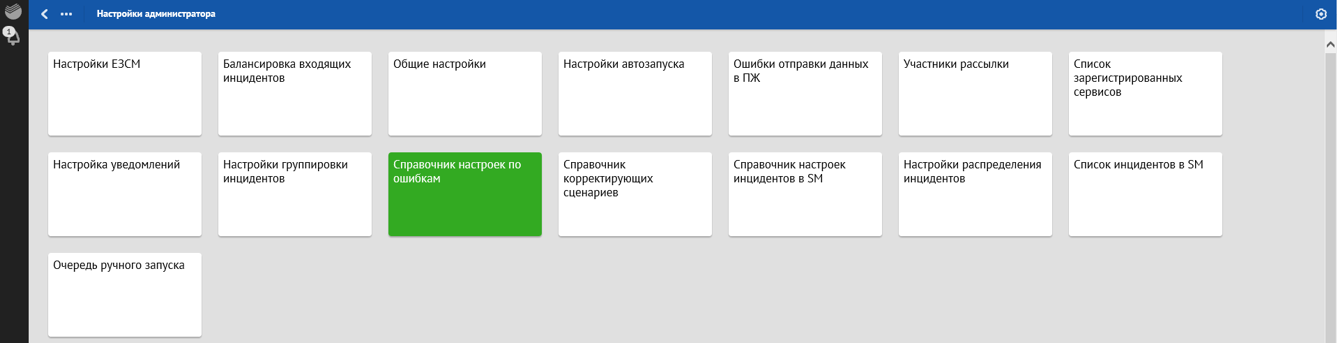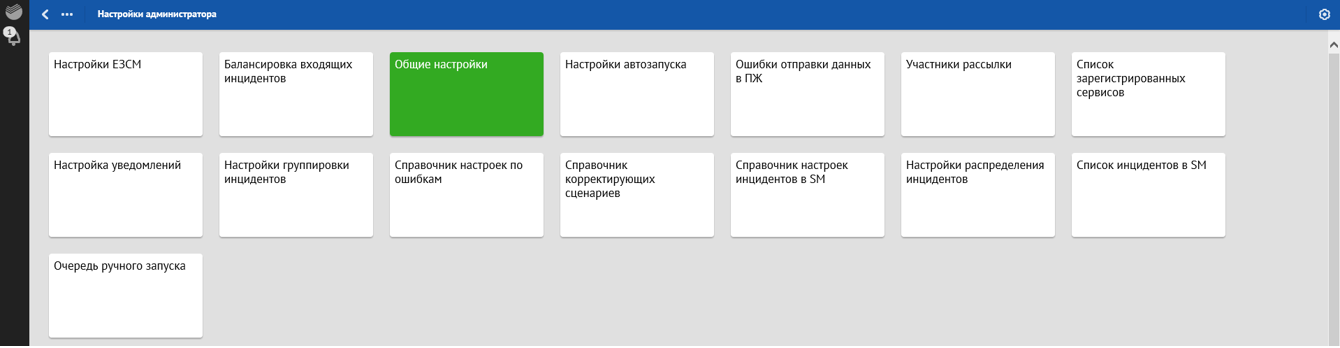 Администратору доступны общие настройки, которые определяют функциональность Продукта, и загрузка файла с настройками обработки по ошибкам (с кор. сценариями и без кор. сценариев). Подробное описание настроек приведено в разделе Настройки администратора настоящего документа.