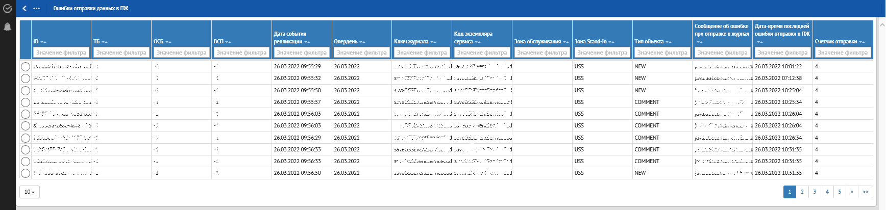 Рисунок. Страница типа сервиса «Все» по выбранной ошибке