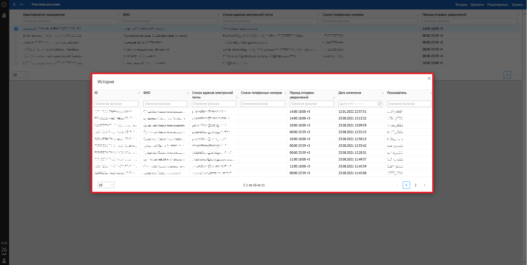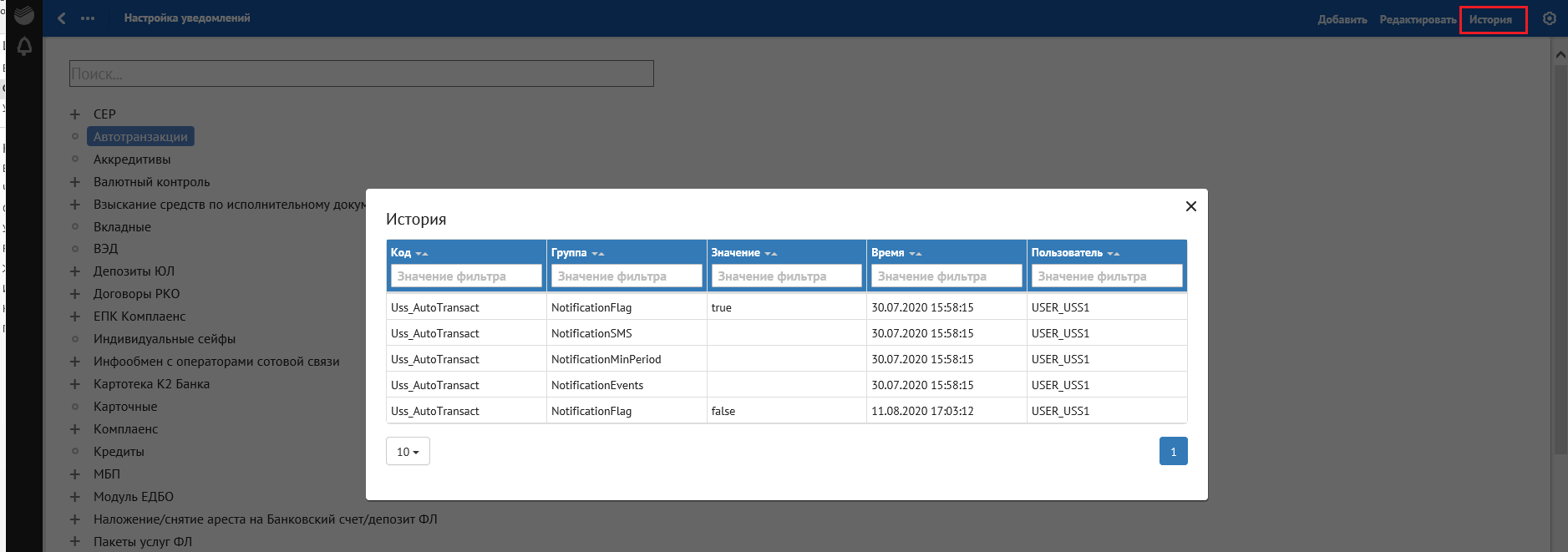 Ниже представлена страница журнала прикладного аудита, отражающая действия пользователей, отсортированные в соответствии с заданными условиями.