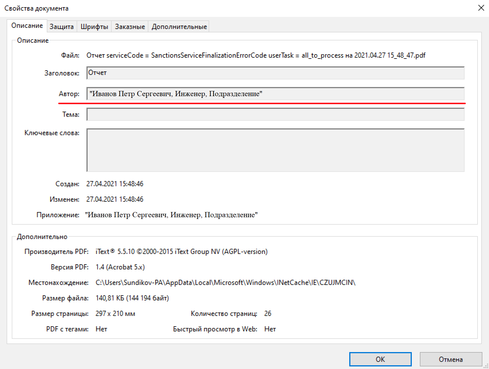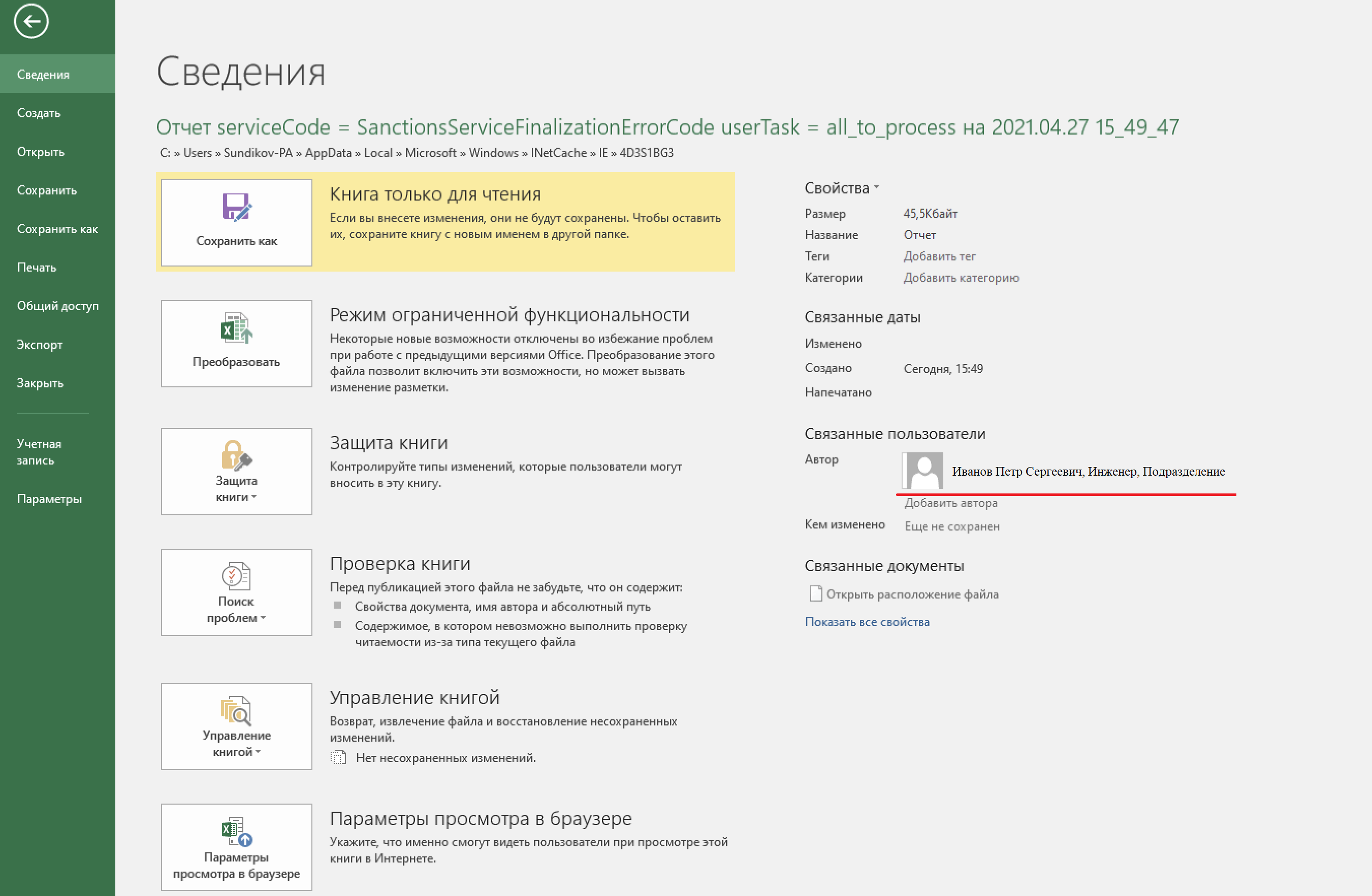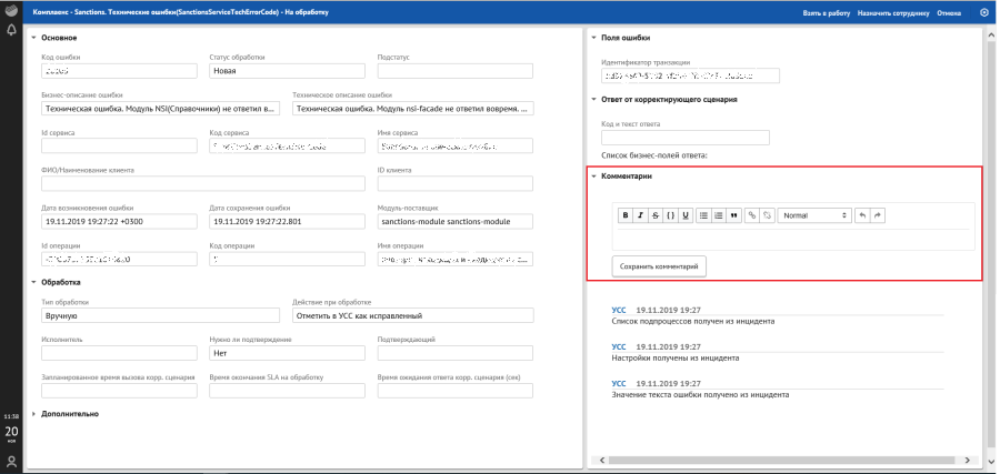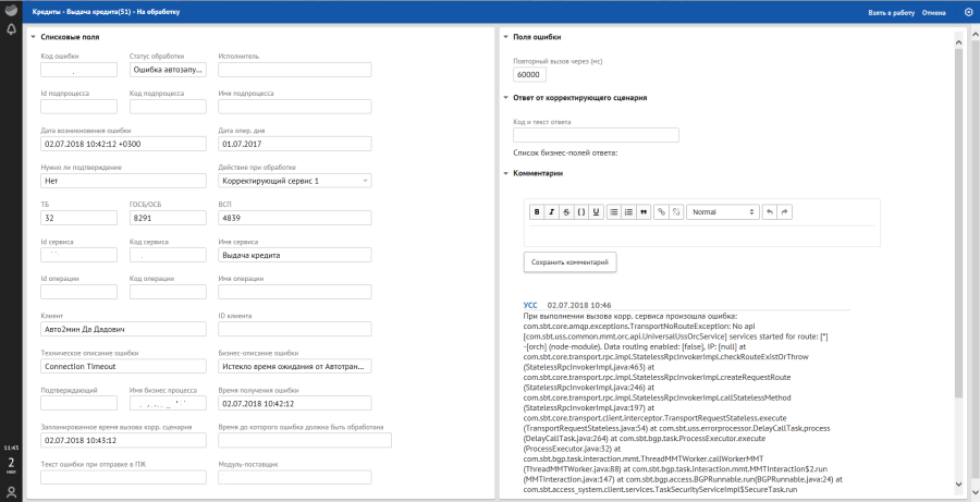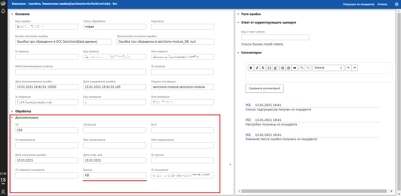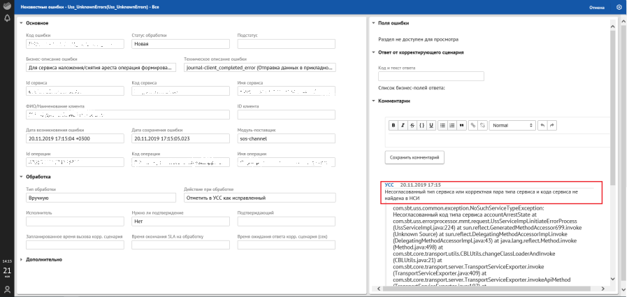 Рисунок. Подробная форма с информацией по ошибке