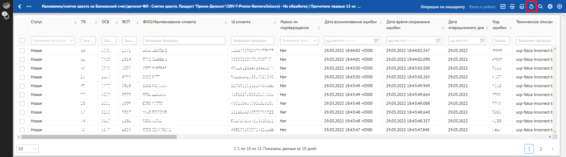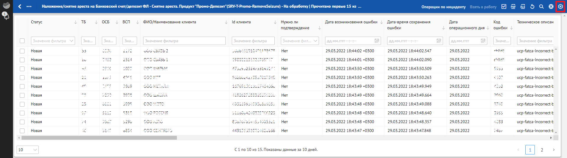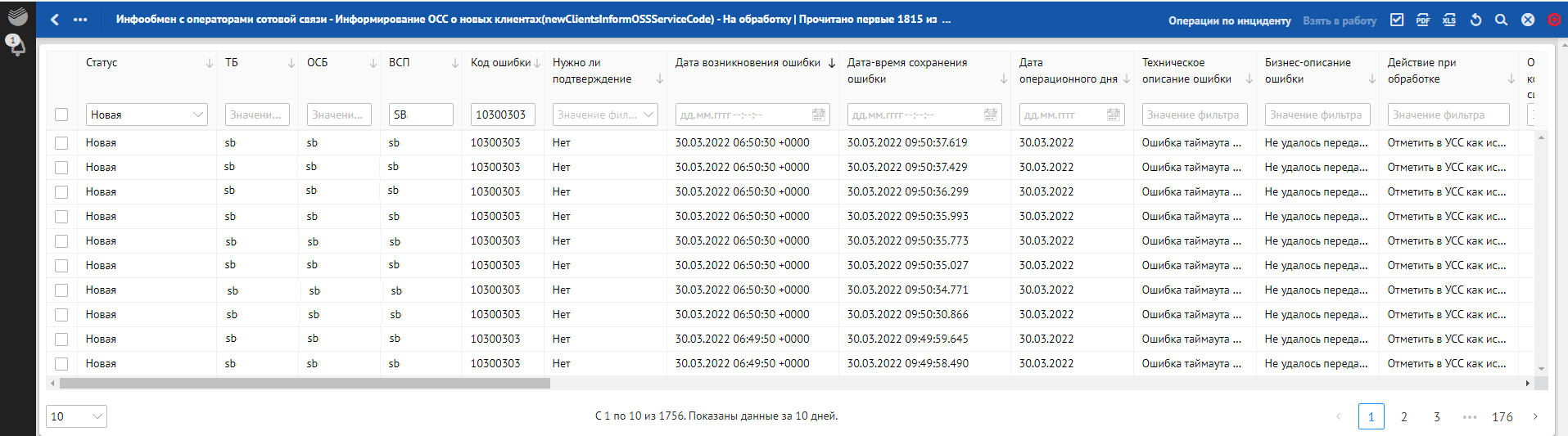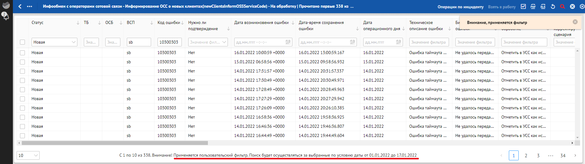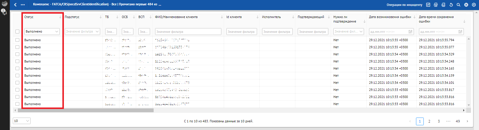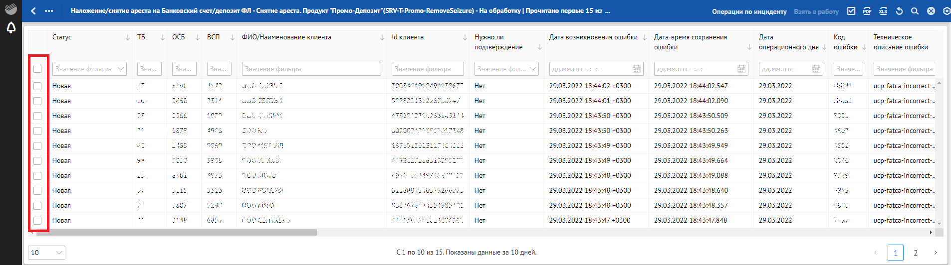 Кроме отклонений, отражающих в себе SLA о времени обработки, красным фоном также подсвечиваются отклонения, по которым произошли следующие ошибки обработки: