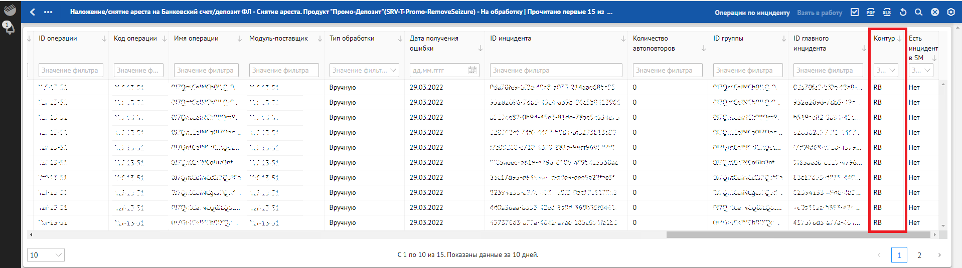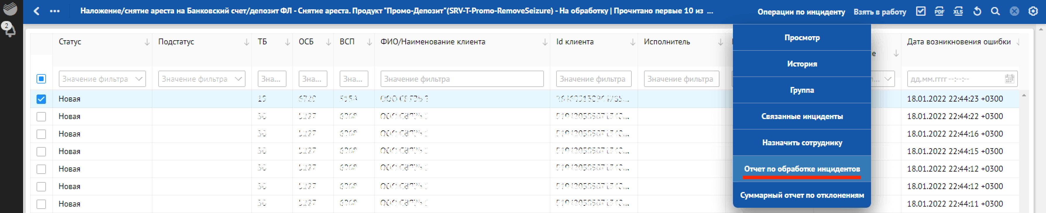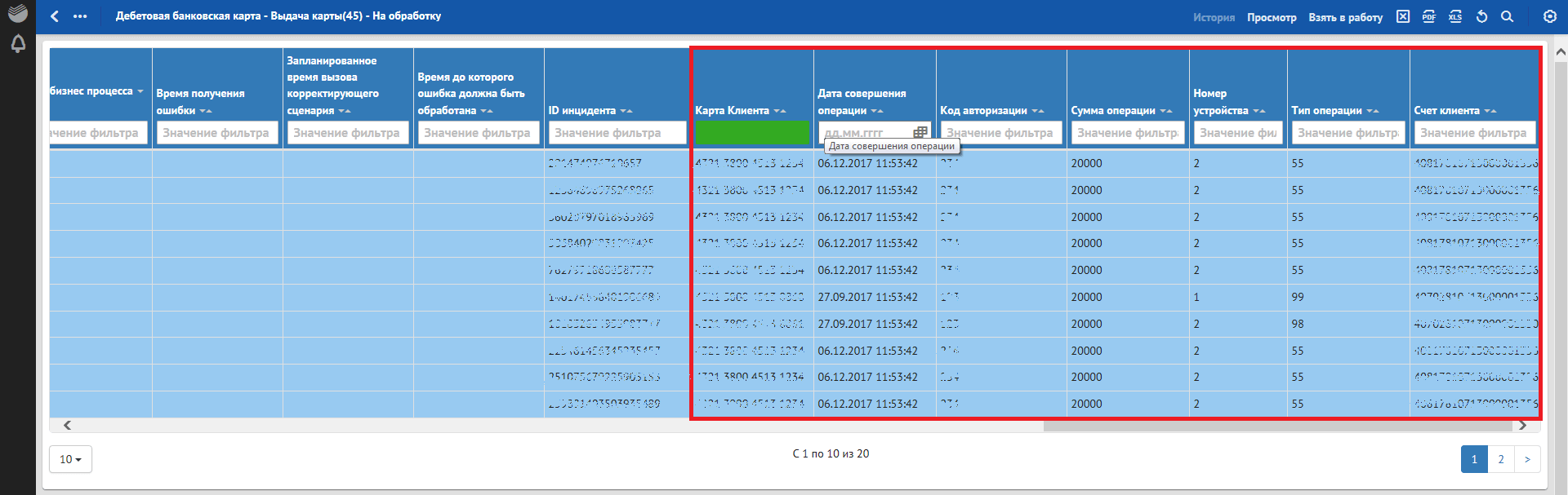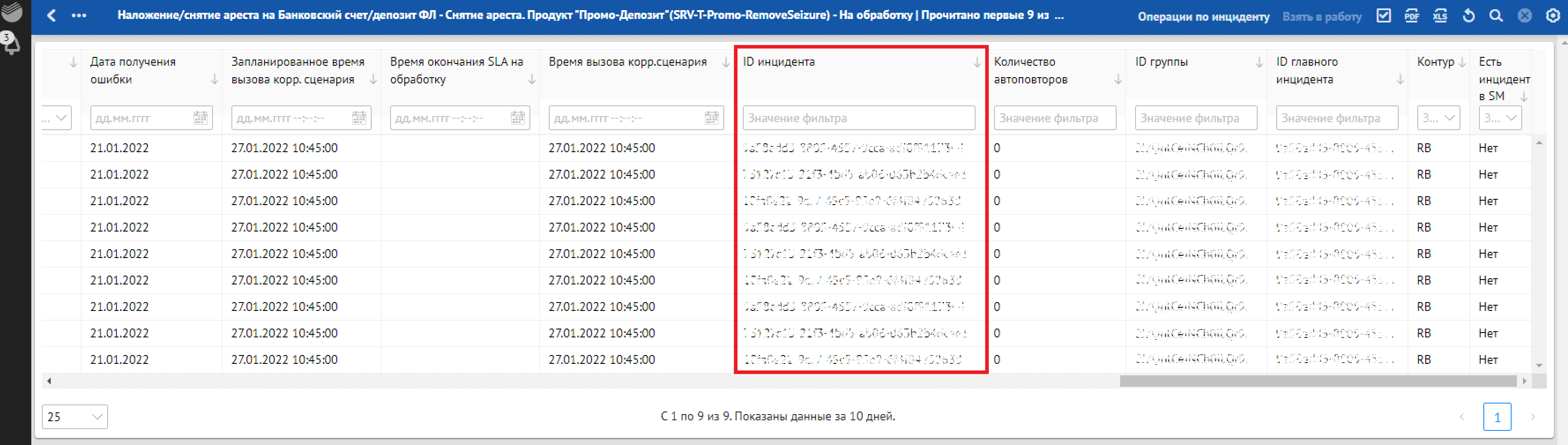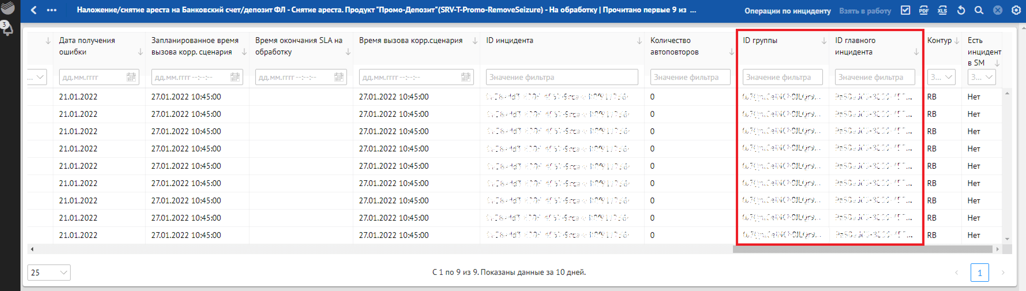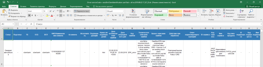 Кроме отклонений, отражающих в себе SLA о времени обработки, красным фоном также подсвечиваются отклонения, по которым произошли следующие ошибки обработки: