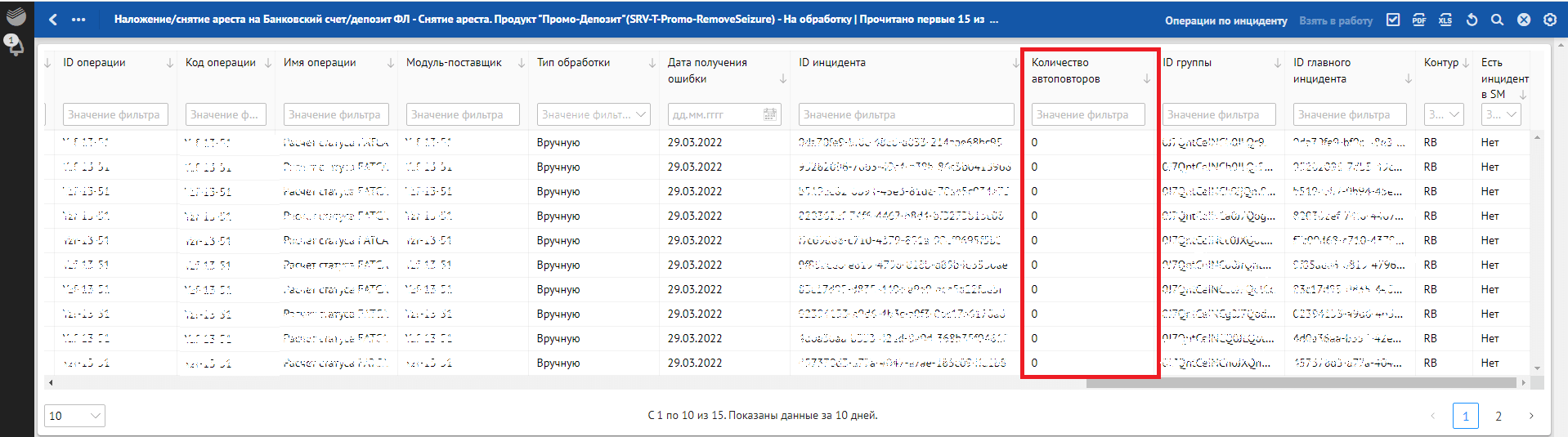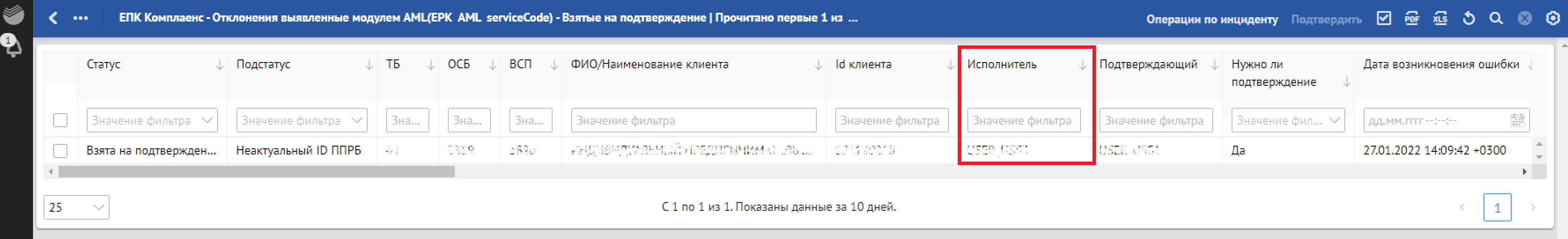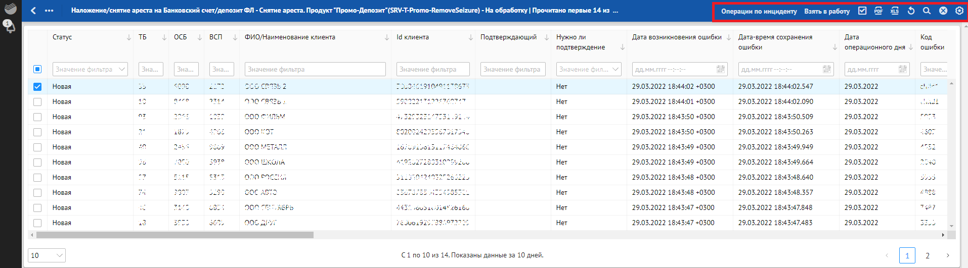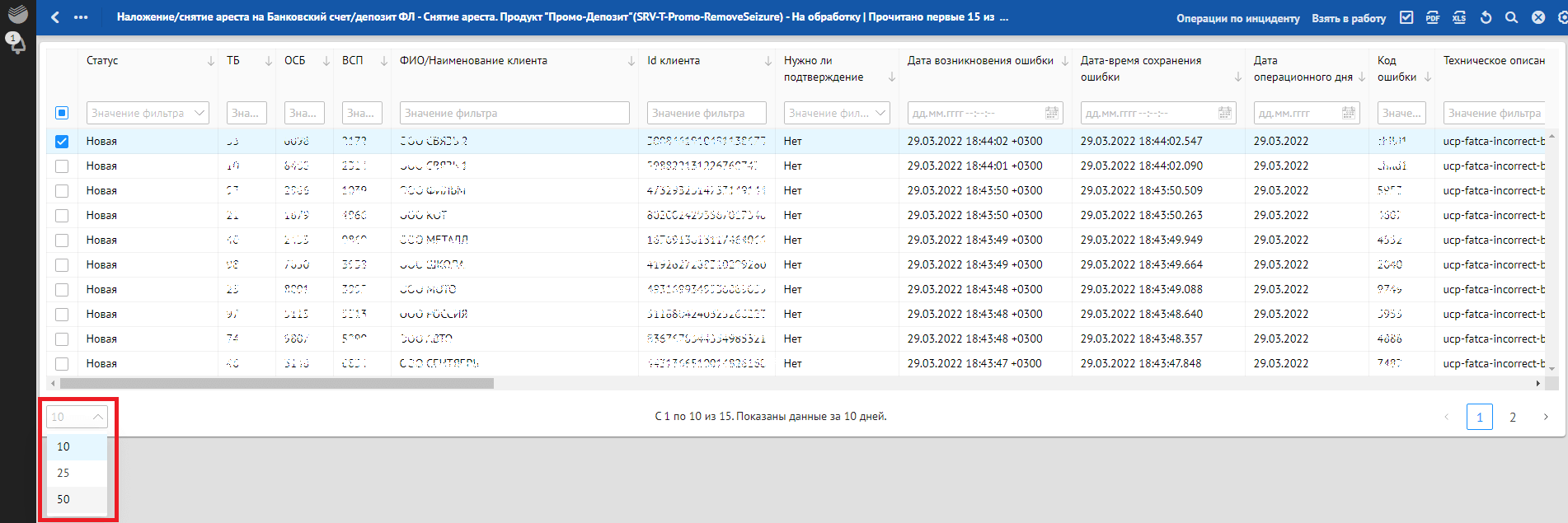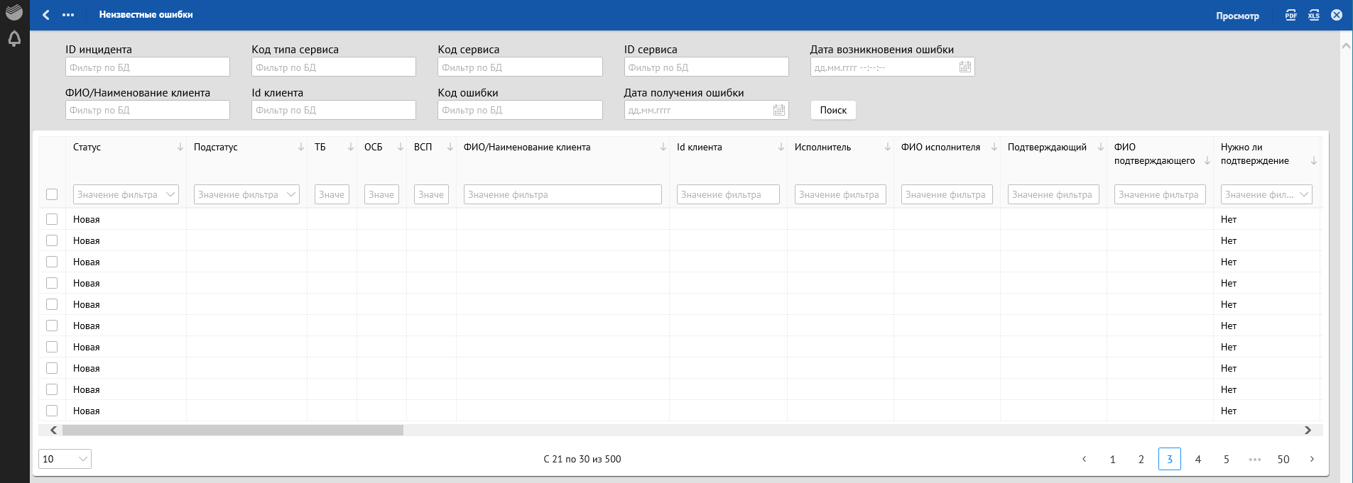 Кроме отклонений, отражающих в себе SLA о времени обработки, красным фоном также подсвечиваются отклонения, по которым произошли следующие ошибки обработки: