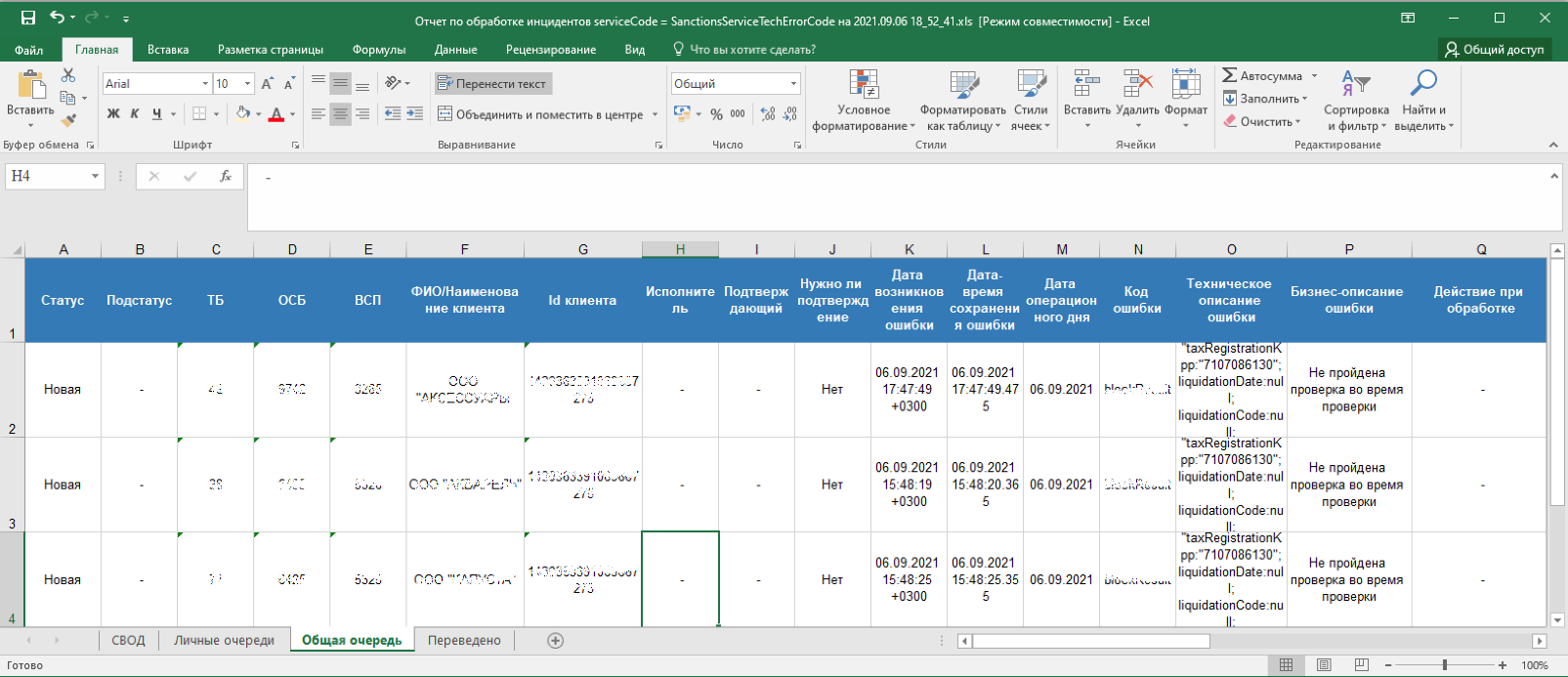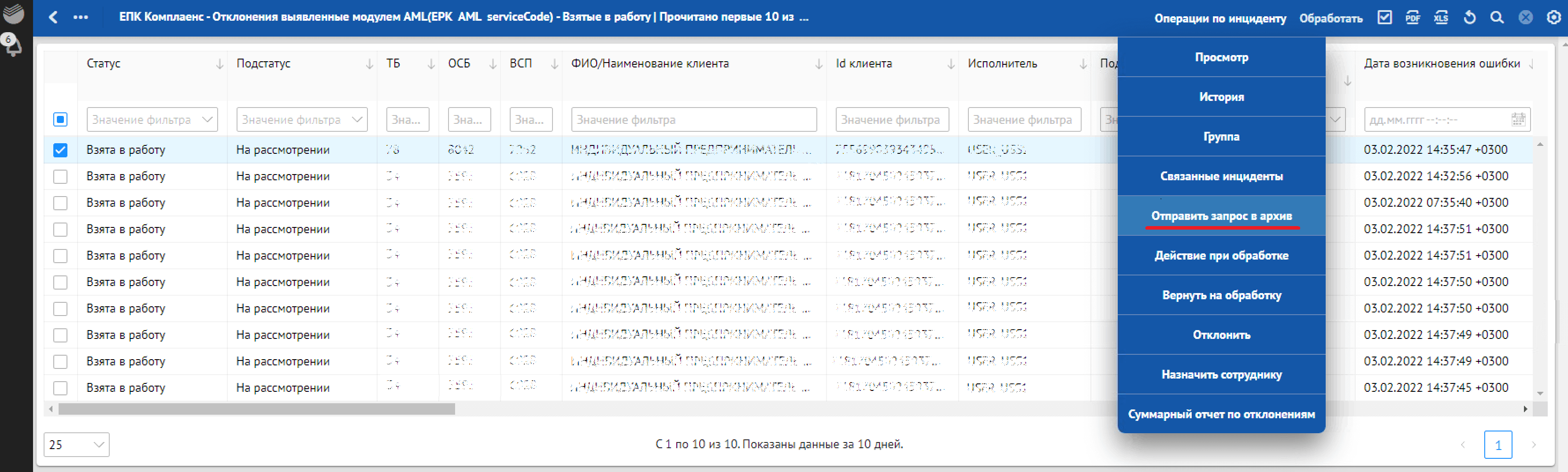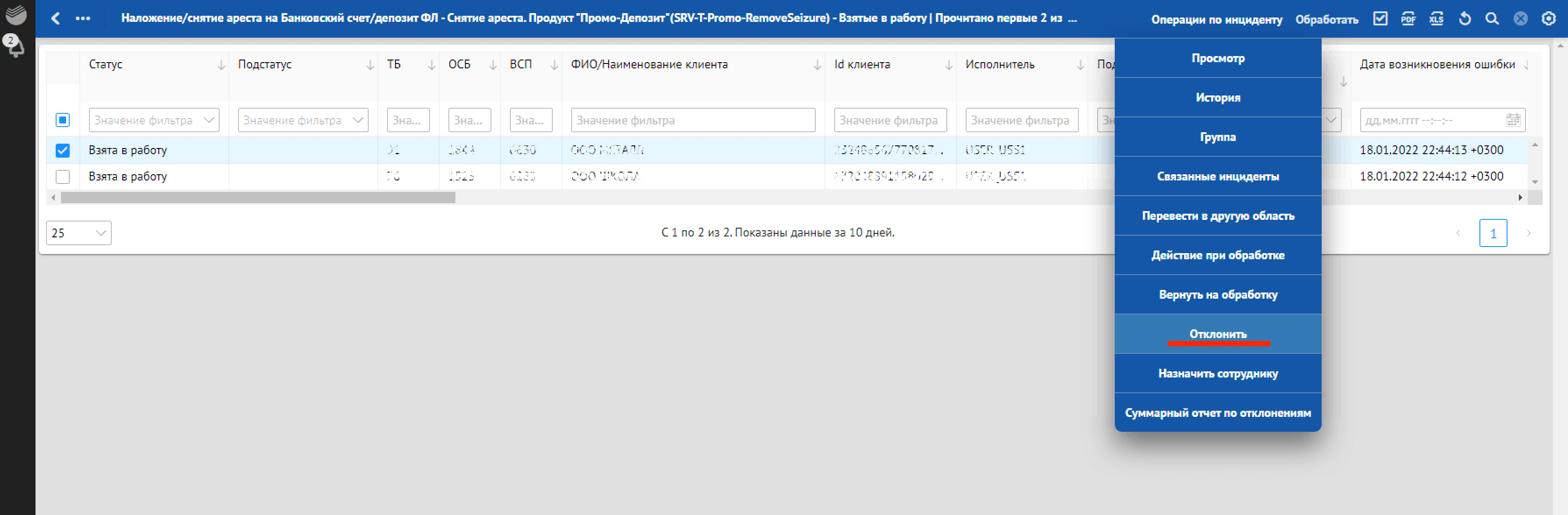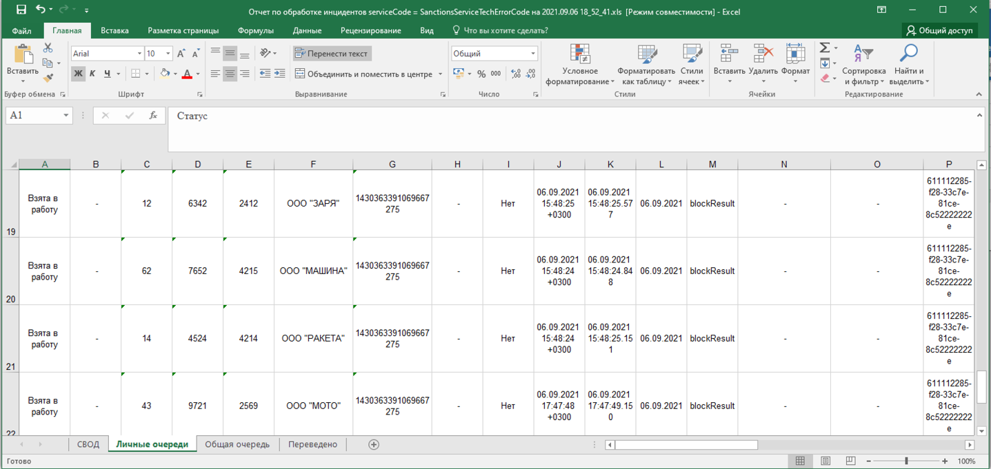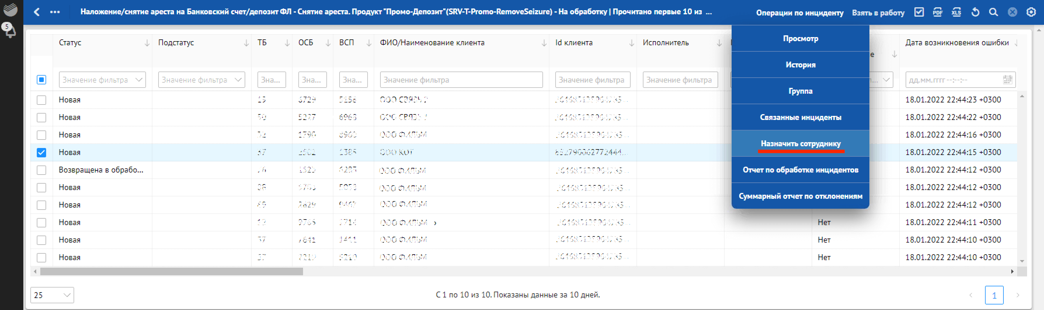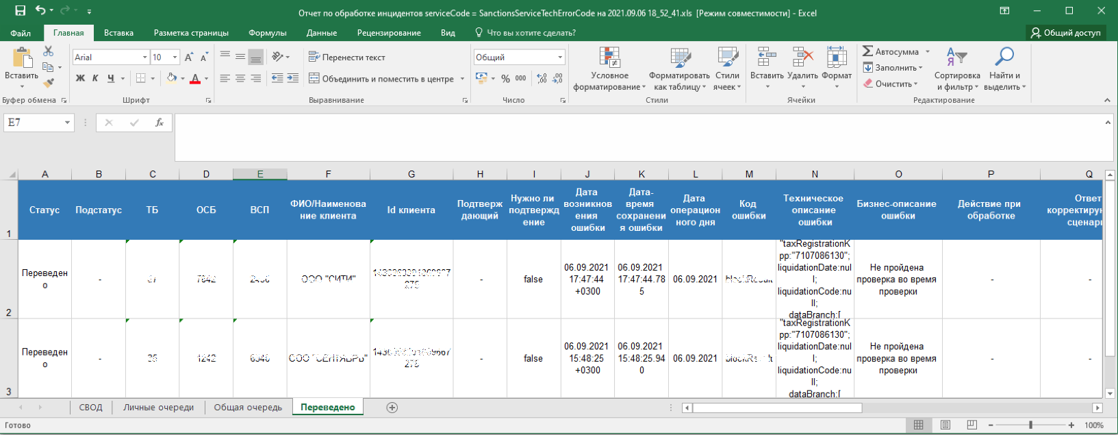 Кроме отклонений, отражающих в себе SLA о времени обработки, красным фоном также подсвечиваются отклонения, по которым произошли следующие ошибки обработки: