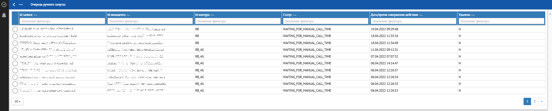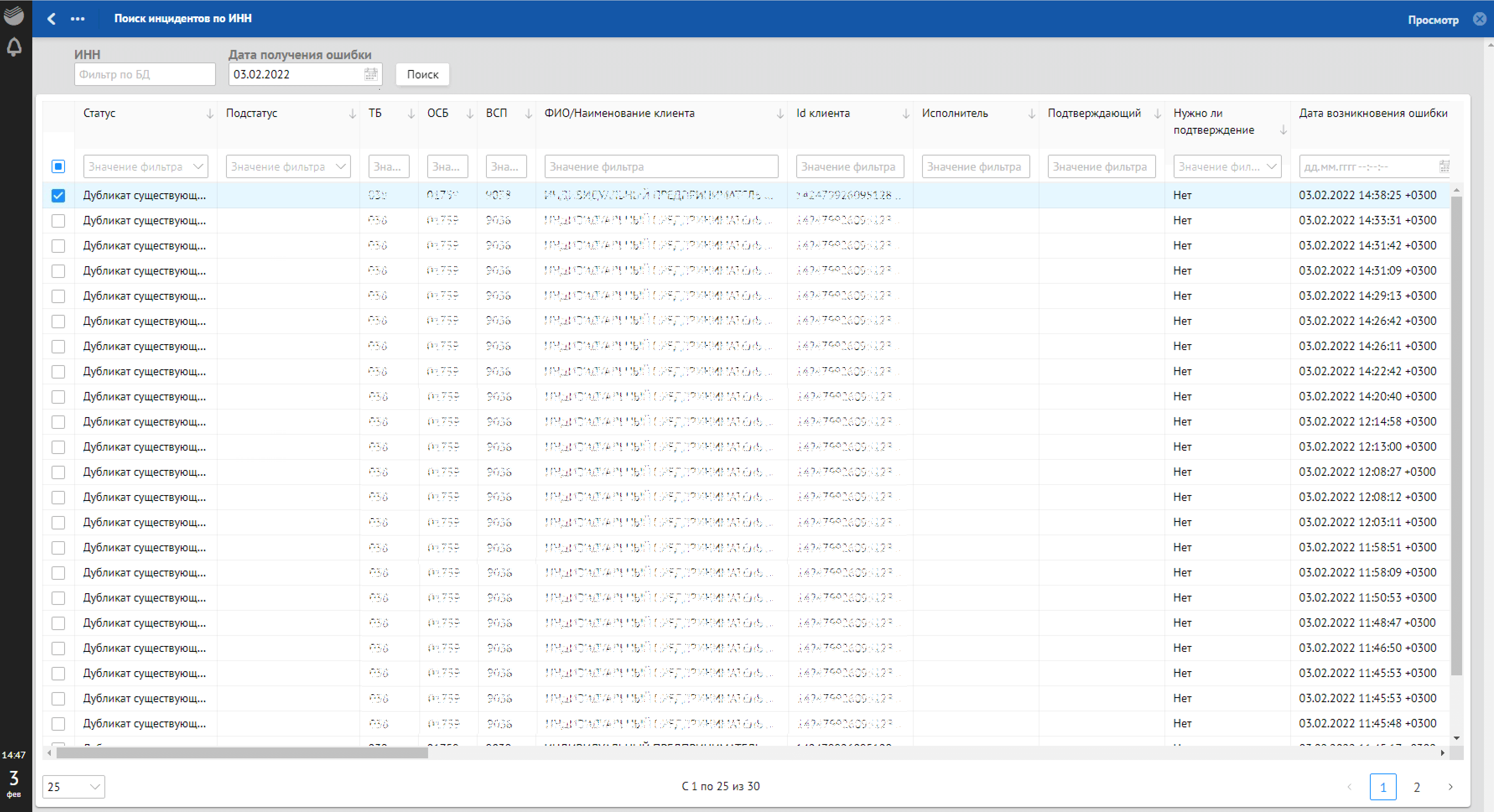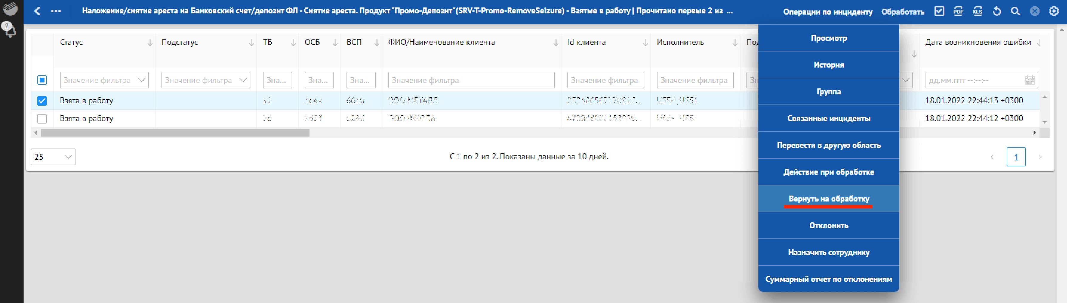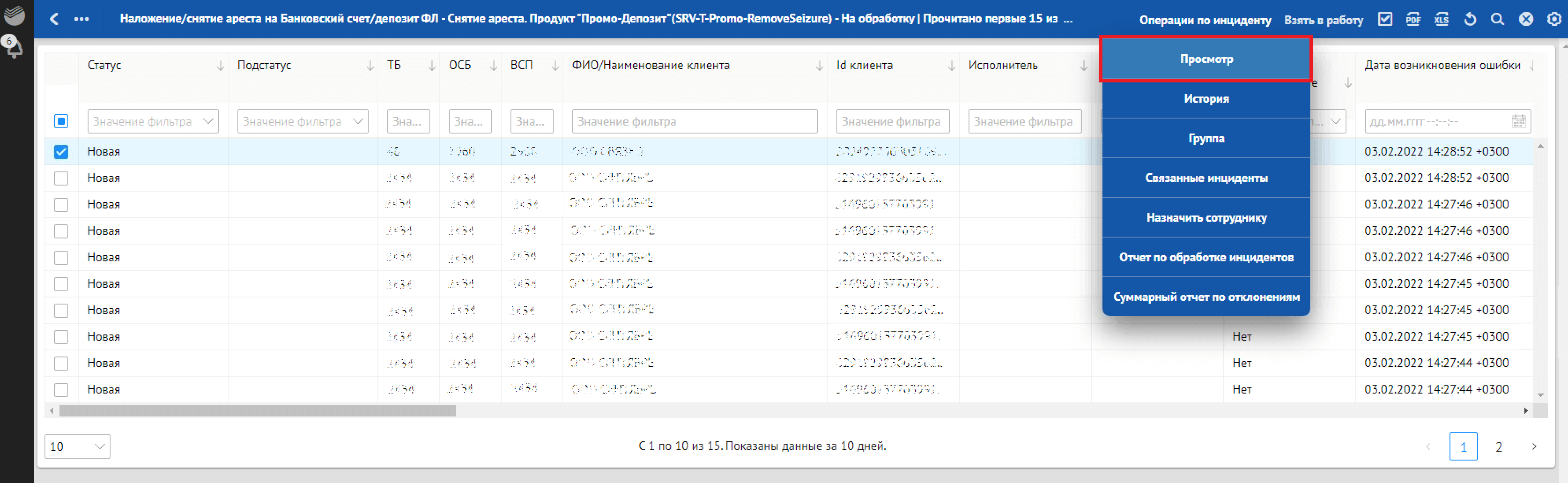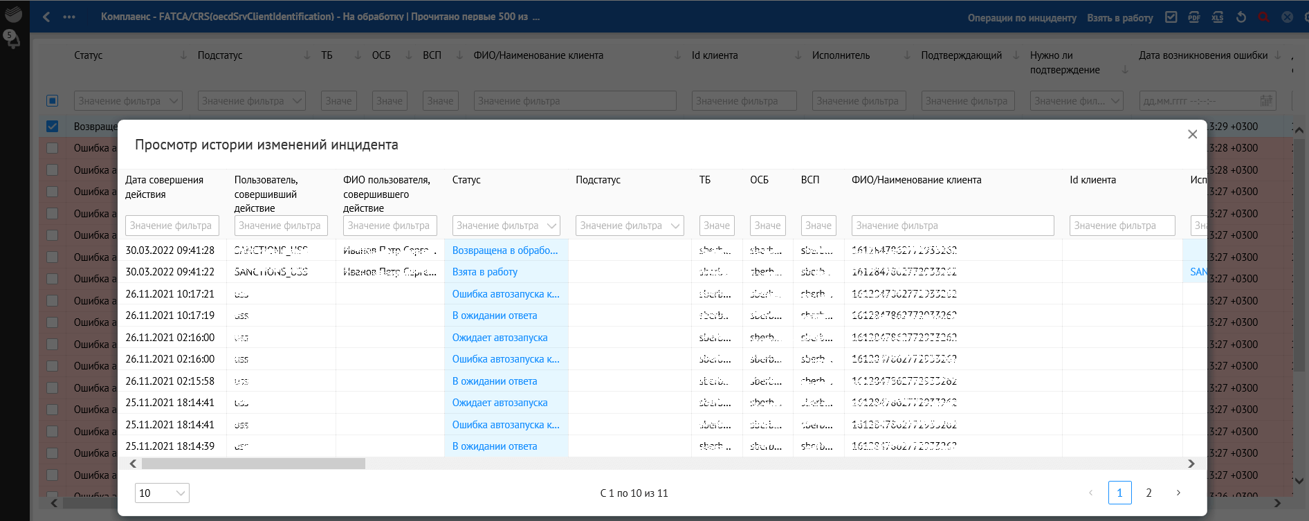 Кроме отклонений, отражающих в себе SLA о времени обработки, красным фоном также подсвечиваются отклонения, по которым произошли следующие ошибки обработки: