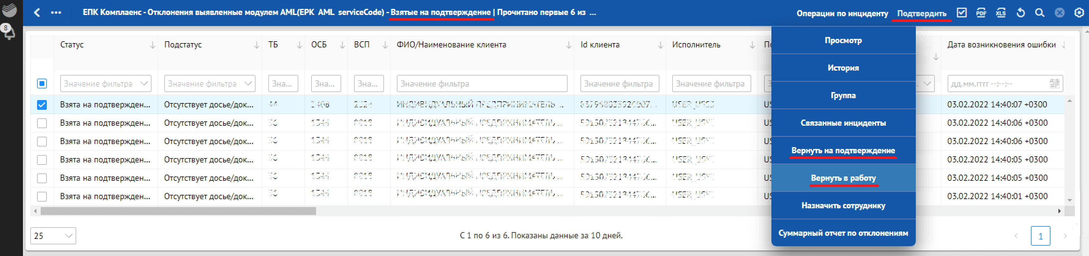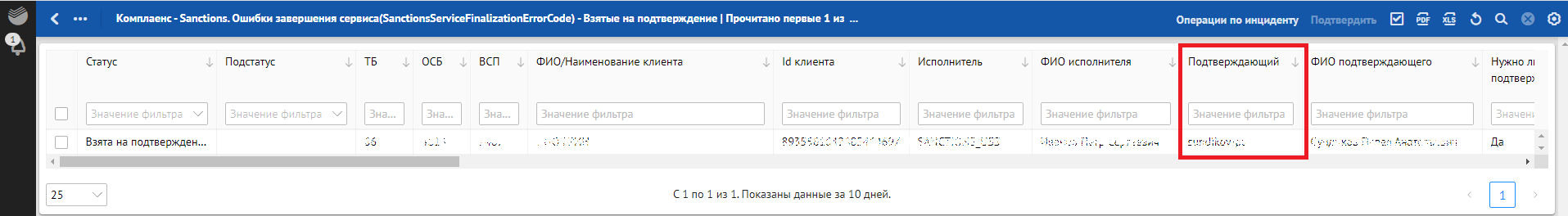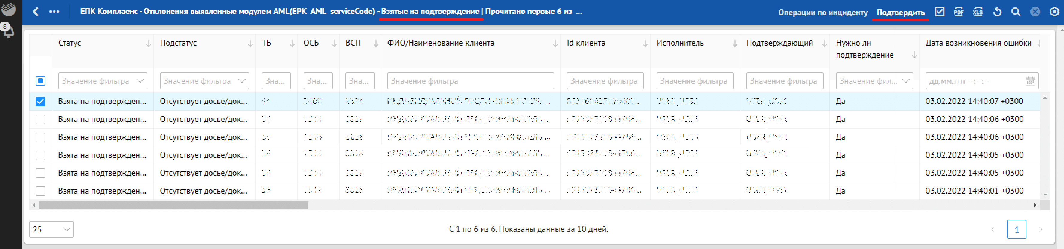 в разделе «Взятые на подтверждение» — действие «Подтвердить».