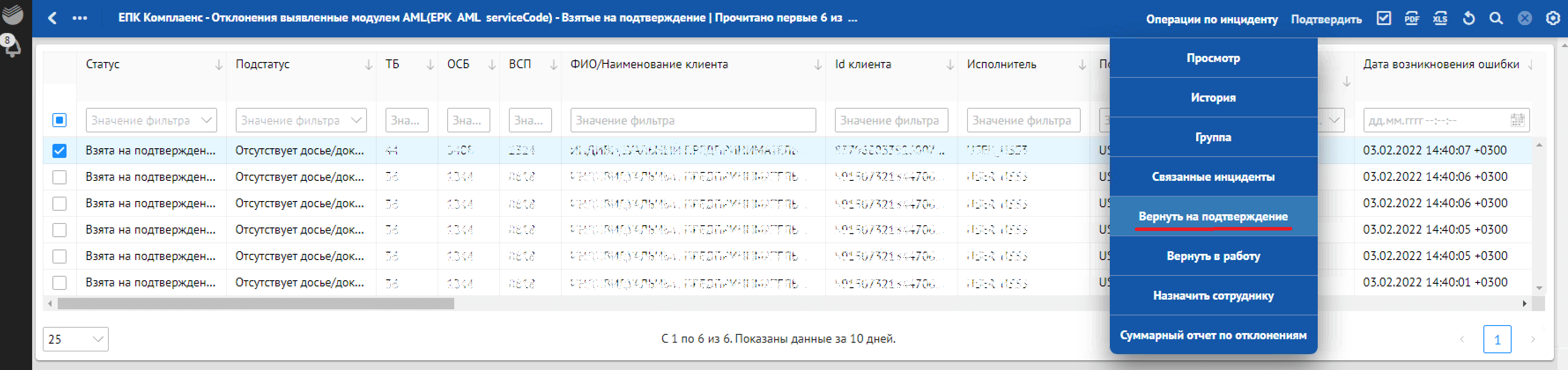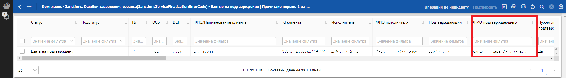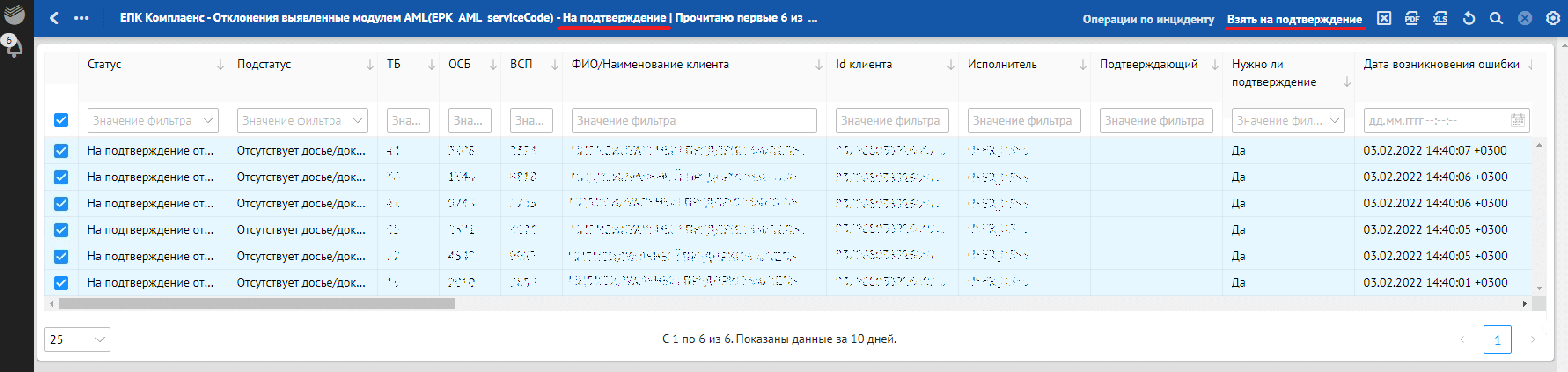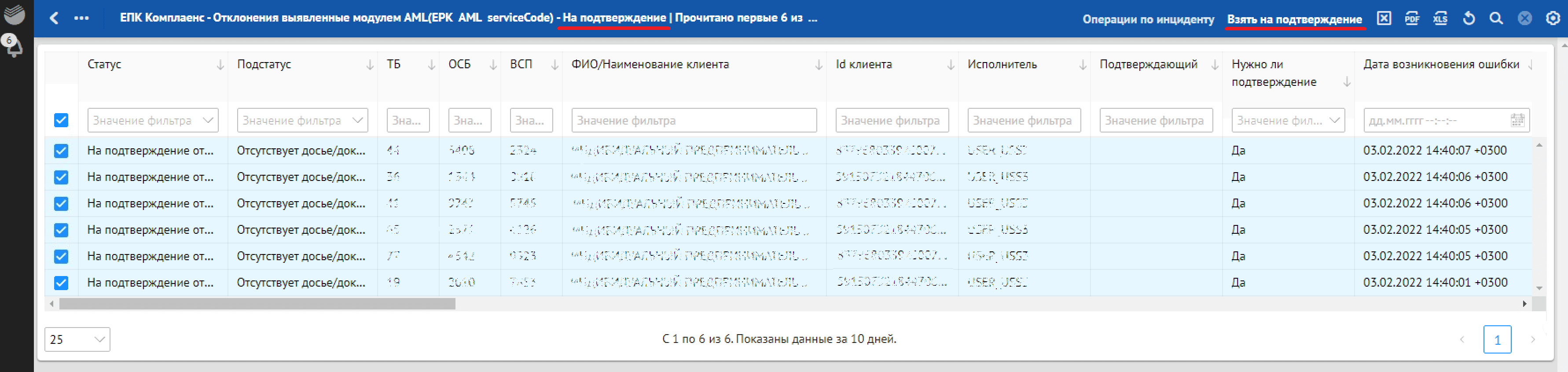 в разделе «Взятые на подтверждение» — действие «Подтвердить».