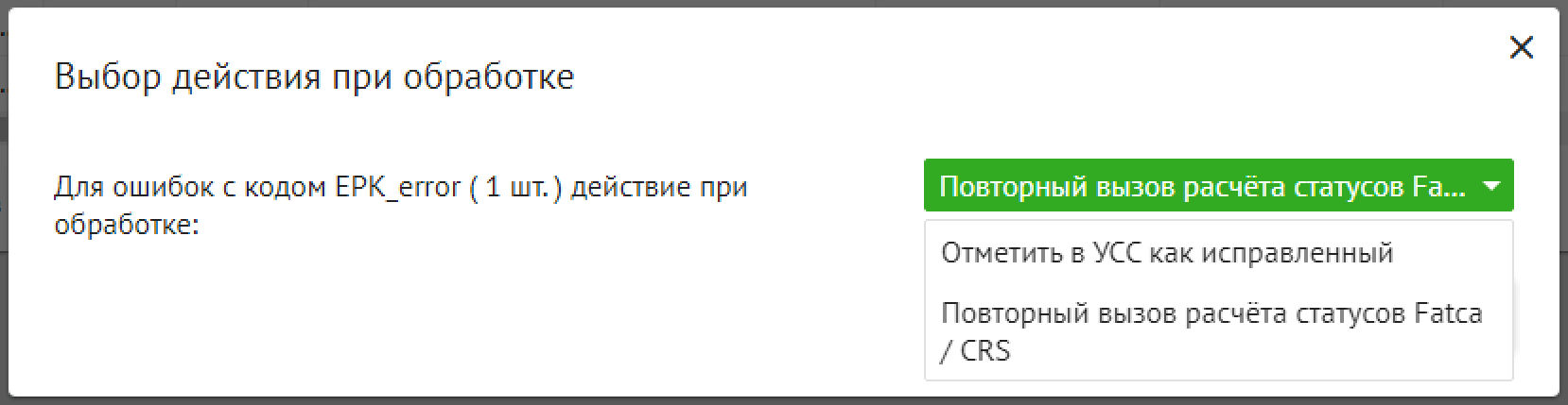 Рисунок. Выбор отклонения в разделе «Неизвестные ошибки»