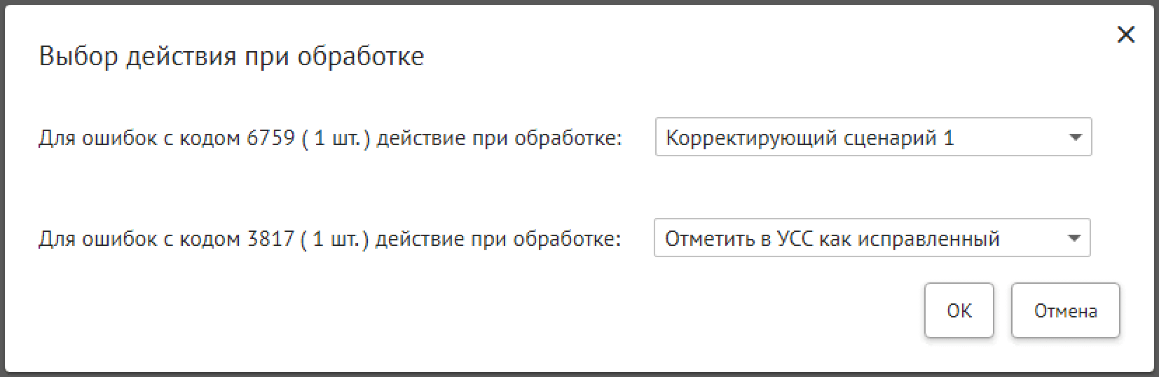 Корректирующий сценарий вернул ошибку (отклонение не исправлено).