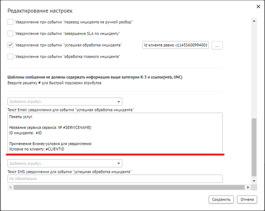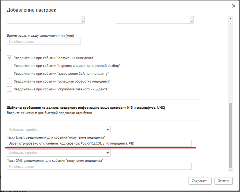 Для тех случаев, когда по отклонению установлено плановое время завершения обработки SLA и оно просрочено, реализована возможность отправки уведомлений о завершении SLA. Подробное описание настройки уведомлений приведено в разделе «Настройка уведомлений».