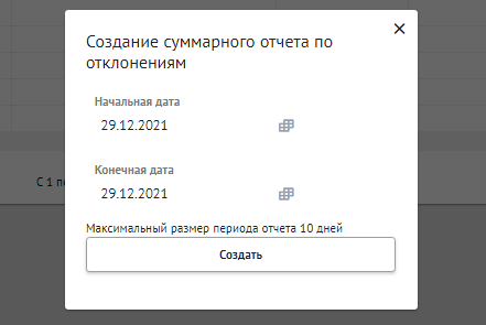 Выгрузка отчета в виде таблицы (например, в формате XLS) по всем отклонениям, отобранным по текущему фильтру |