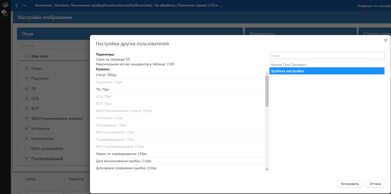 Рисунок. Окно поиска и отображения отклонений по заданному критерию