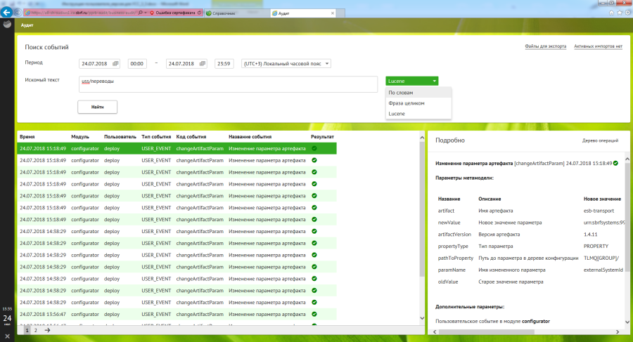 Информация на странице «Сквозной поиск» позволяет искать отклонения по заданному пользователем параметру по всем разделам Продукта.
