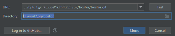 Клонировать проект, используя ранее скопированный URL и каталог расположения проекта D:\work\prj\bosfor.